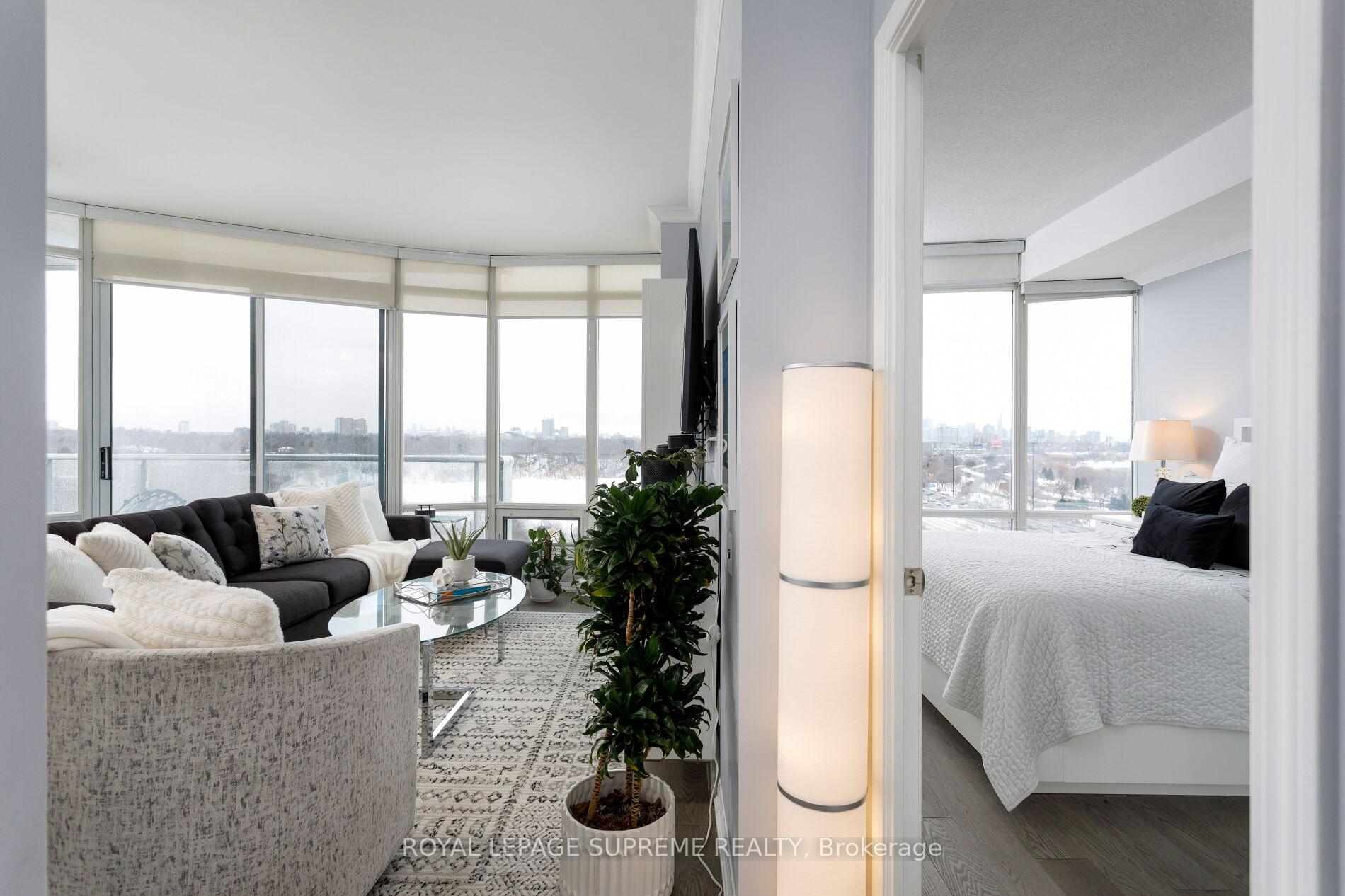 Welcome to Windermere by the Lake. This fully renovated 2-bedroom + den, 2-bath corner suite offers nearly 1, 100 sq ft of refined living space wrapped in floor-to-ceiling windows beneath 9-foot ceilings. Bright and airy throughout, the home showcases spectacular, unobstructed views of High Park, the city skyline, and the lake, delivering breathtaking sunrises and an unforgettable backdrop for everyday living or entertaining. Thoughtfully redesigned with modern finishes and a versatile den ideal for a home office, this turnkey residence also features a private balcony for seamless indoor-outdoor enjoyment. Ideally located just steps to High Park, the waterfront, trails, transit, shops, and cafés, offering the perfect blend of nature, convenience, and west-end sophistication. Elegant, spacious, and completely move-in ready-this is condo living at its finest.